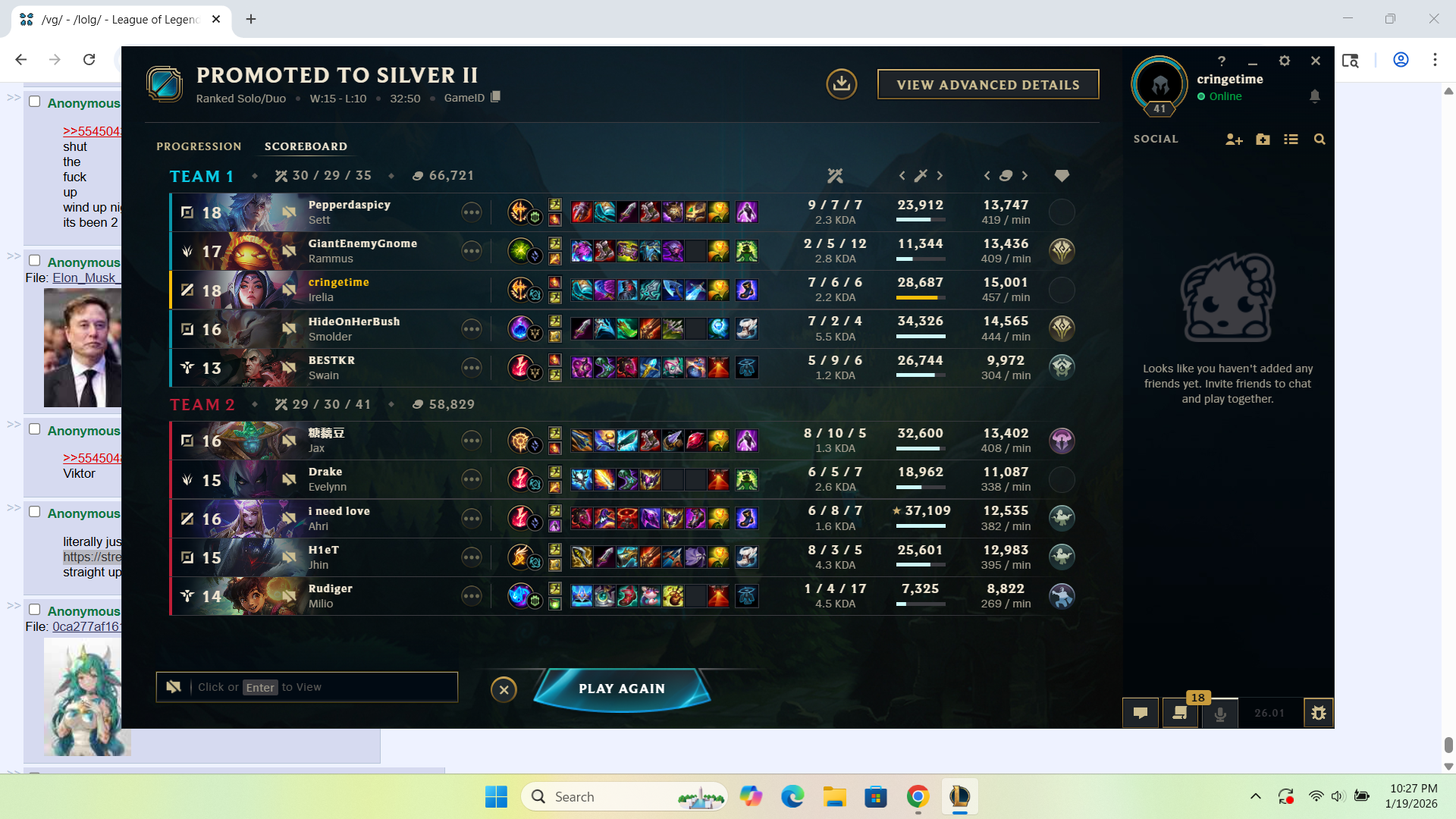 >/lolg/ being critical of other peoples plays without posting their ownKind of cringe desuPost webms and a songhttps://www.youtube.com/watch?v=4LF_4uNfcgY