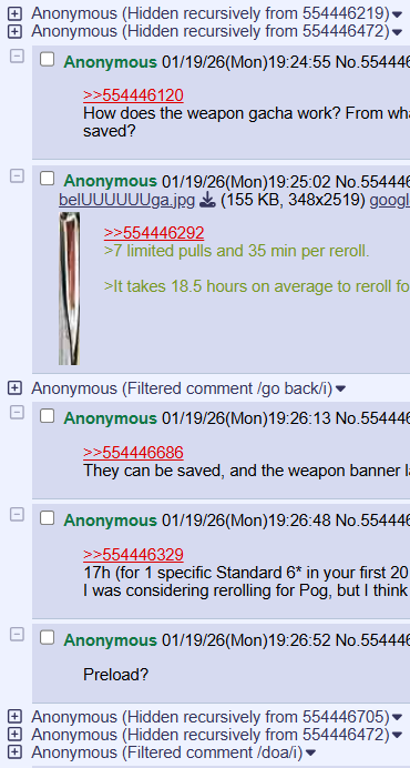 >>554443628>are all gacha generals this bad?Yes. Especially before launch. You just learn to tune out what you don't like (or you give in and indulge the shitposter which is never good, but we're all just human).