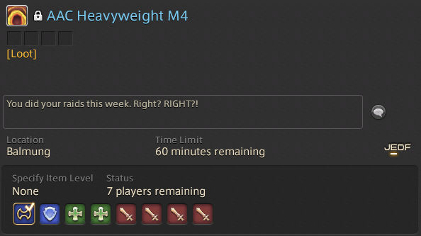 >>554468342Yeah but that's only for people who haven't cleared and are so desperate to clear they're hoping one extra item level will do it for them.