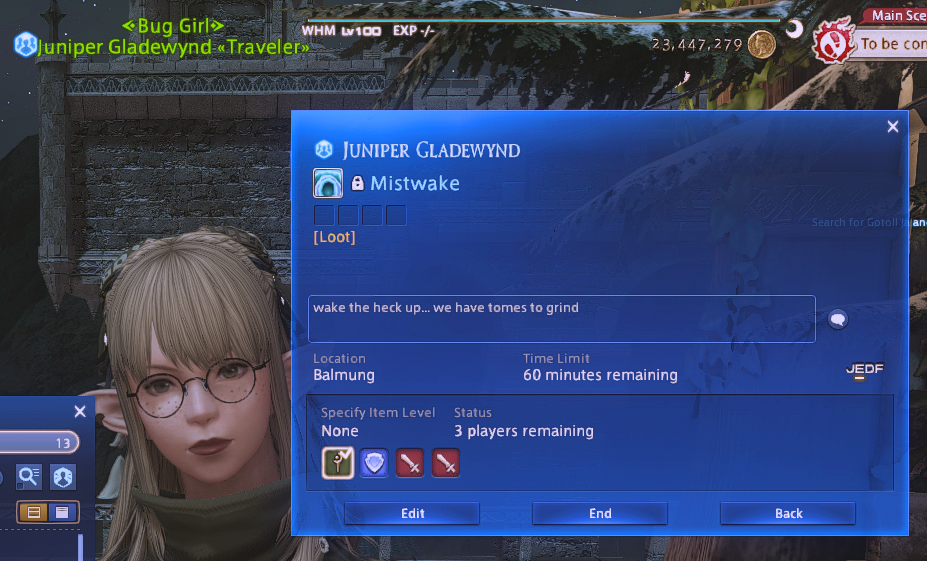 >>554483058>>554483101oh I didn't realize this was on Balmung... we're still on Aether, sorry femezen
