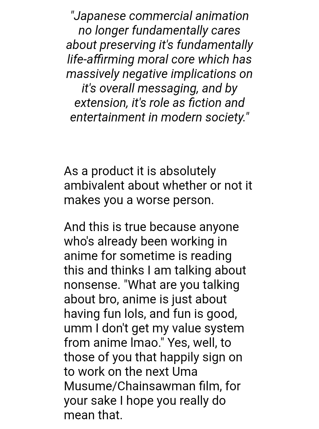 >>554532512>There is no such thing as an anti-hero, nor a hero for that matter, only saints and demonsWhy is it so hilarious to listen to masafag's take on its themes and message?I swear you can pair any two of them up and receive three contradictory reviews as a result.