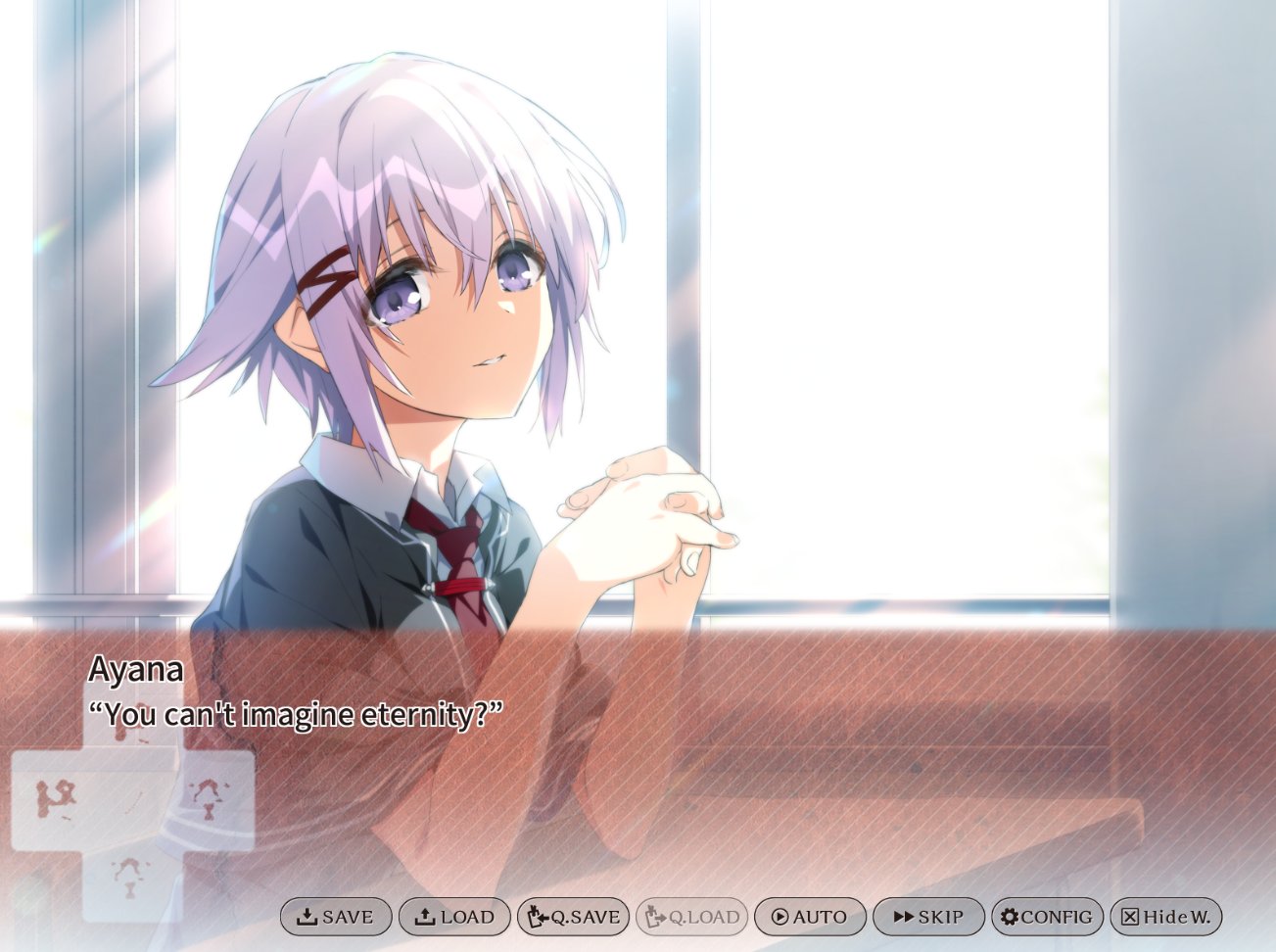 I really wish this VN didn't rely so heavily on the 3d models... The emotional scenes would work so much better with an actual background and not a bunch of chibi models.