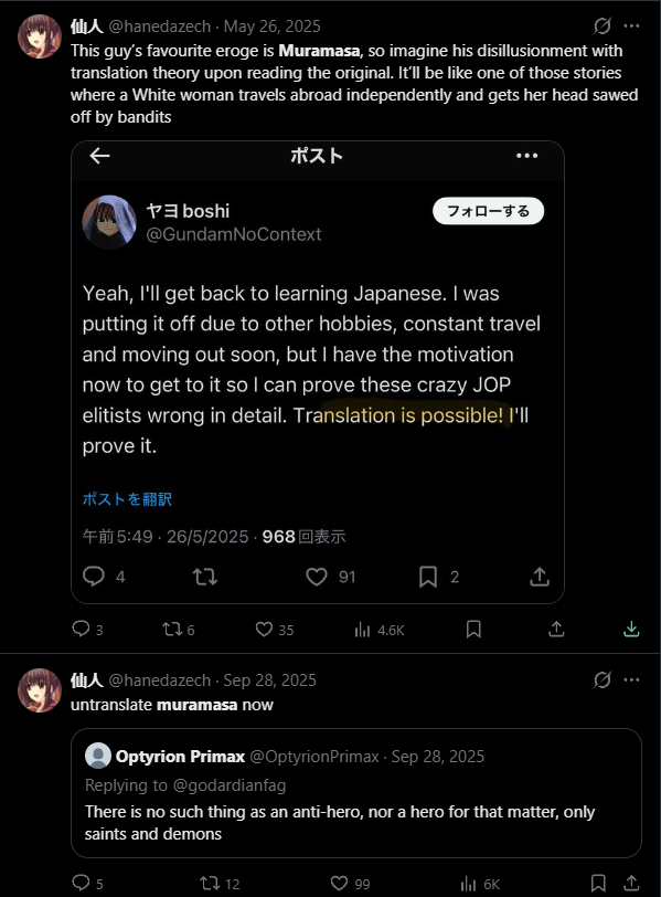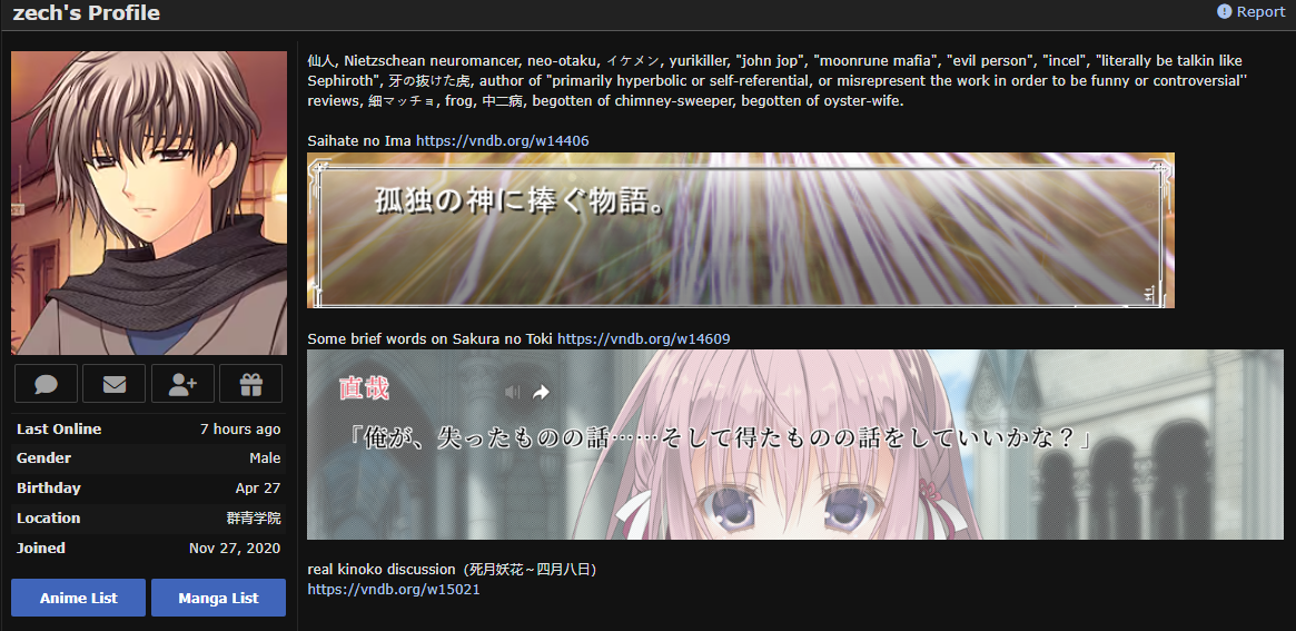 >>554531640>>554532230it's funny how he clearly liked the english version muramasa from these archives but he removed his score on vndb because he read it in english. and now this is apparently his stance on it.