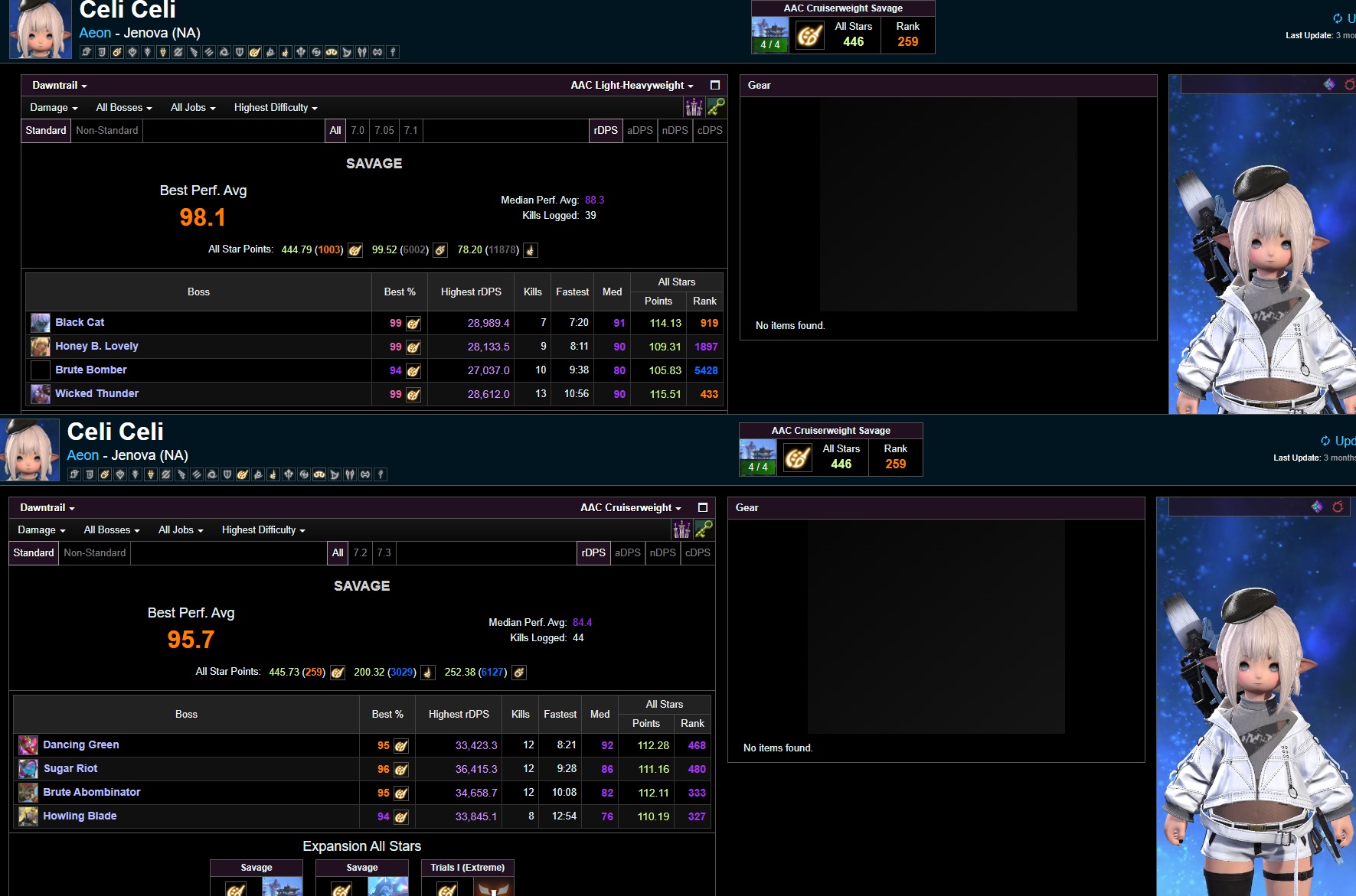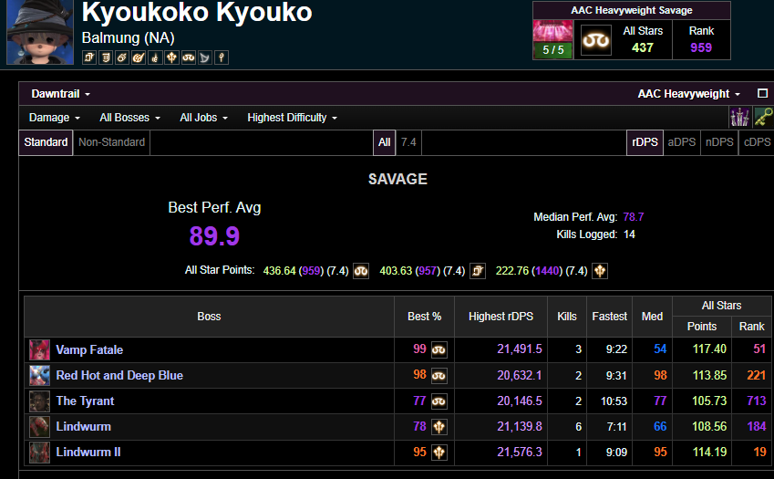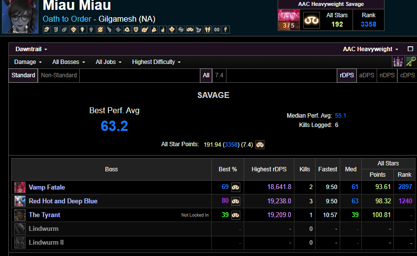 >>554490858>>554491218>>554491281>>554491953>>554492238It's just demotivating when joining PF and someone kicks you because they saw a grey parse. Unironically happened twice, both were 99 pictomancers weirdly enough. But thanks for the info, I wasn't aware my parses relied on the overall party performance. I'll try do better regardless.