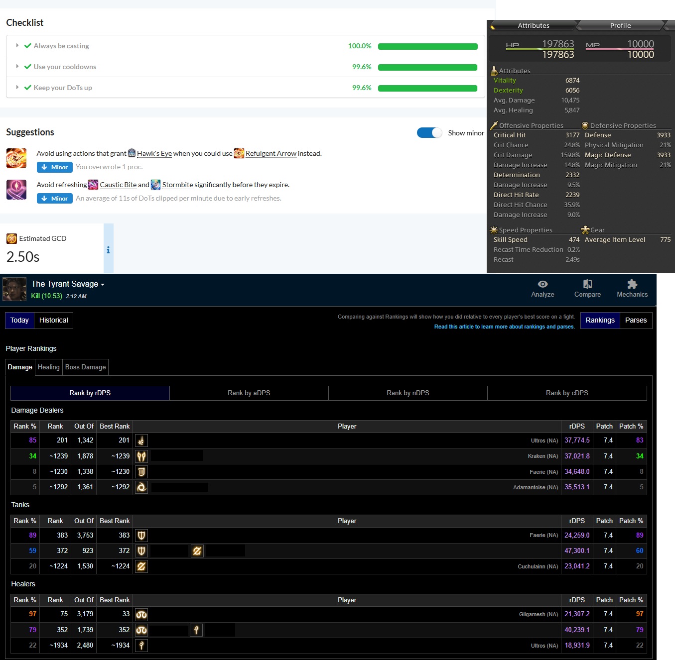 >>554494362Yeah unfortunately people on this game are niggersAnd yes it does depend on party performance, there are factors you can't control like kill time but also for any job with raid buffs you get better parses if your team does more damage generally, and BRD is one of the more team dependent onesPic rel is a 77 on nDPS but barely a green parse on rDPS which is the default metric that you get ranked by