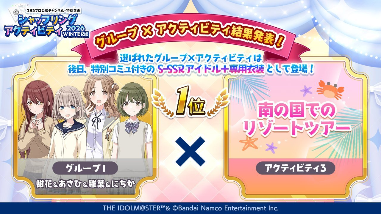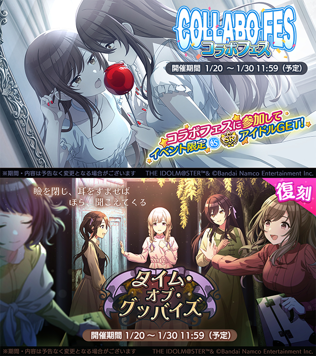 iM@S NEWS ARCHIVE- Archive of >>554354102: archive.is/QaQHX>Million Live- TD Kaori's "My students are fighting over me." gacha ad: >>554495825- TD "Grateful Monochrome" ALLSTARS outfits now dropping: >>554495329- TD BATTLE OF MASCOT China Edition: >>554442420 >>554442885- ML "Sacred Bouquet" digital release: >>554446125>ALLSTARS- Chihaya Solo Live "Oath ONE" solo music video collection: >>554493213>SideM- SM S.E.M on NHK Radio's "Let's Chat at a Family Restaurant Today?" on Mar 15th, 2:05PM JST: >>554074925 >>554500638>Gakuen- GK "NAIWA" hits 2M: >>554447263- GK x RAKU SPA collab part 2 from Feb 5th to Mar 3rd: >>554493589 >>554493787>Shiny Colors- SFP 6th Technical Challenge Cup featuring "Oh Yeah!!" on Jan 21st: >>554009526 >>554494995- SFP Shiny Competition on Jan 21st: >>554494995- SFP Gacha Teaser (Jan 20th): >>554494628- SC x 30 MINUTES SISTERS Chiyoko/Rinze on Jan 24th: >>554441987- MochiWHAT are the new cornerstone of the economy: >>554501038>Other- /@/ Sings "Fighting My Way": >>554471417
