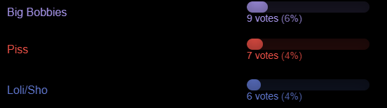 >>554503725It feels like the modem equivalent of that time period where like half the thread kept talking about vore (and then that probably stopped because of kingy)