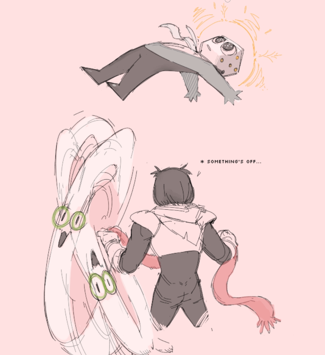 What emotion(s) was Susie supposed to be conveying here? This is after sealing the titan. Kinda feels like this is another moment we don't have full context for, like if we knew more about the world dynamics from Normal Bird's books then we'd know Kris slinging their soul around like this is unhealthy or something maybe.I mean it doesn't seem super normal if you believe that Susie used to live somewhere with a lot of humans. Because she's not confident about what the soul is. Yet she can make the educated guess.