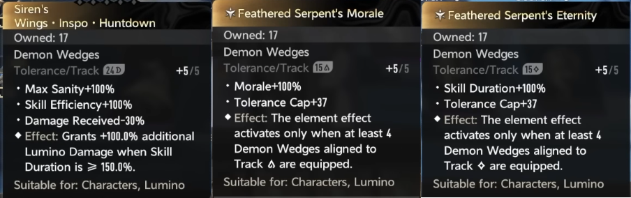 I farmed Hydro but no new wedges came. I have 50 of each of the four coven-whatevers. I'm looking at Lumino next. What do I prefarm? Wingspo, I know. But what else? And what's safe to gold