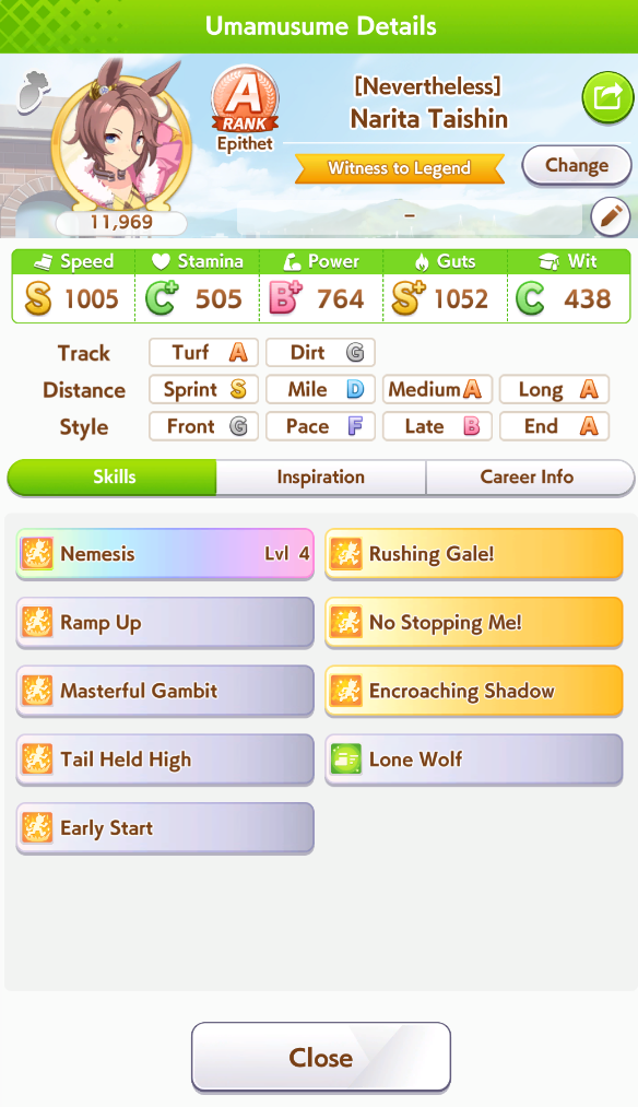 >>554518310It's a brick anyway, the wit is too low and you don't need that much stam for 2500m. You can't even get the extra spd bonus from 600 guts with great mood.