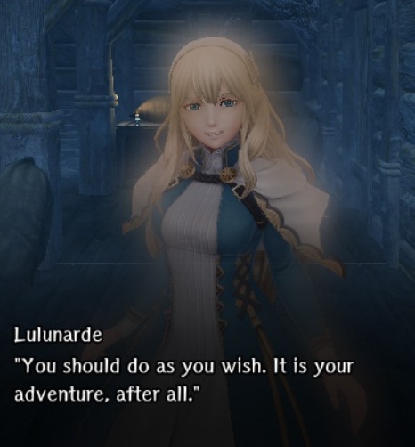 we go to Elmon>No, I don't want to hear about ElmonI do not say that lightly. I know what it could do to this party. but if it's the only real choice we have... if it's either that or you getting executed when you return from the abyss...>I don't want to hear about Elmon!you're NOT some hardened adventurer, Memento Cor! You are in over your head!that's what we tell them! that's the truth!>no it's not the truthof course it is!no grade adventurer? desperate for money? roped into working for the royal family... unable to even upgrade his master's fighter ring??you told me that yourself!Jesus what was I thinking?please let's both of us stop trying to justify this whole thing and admit you're in danger!>Who are you talking to right now?>Who is it you think you see?>Do you know how much junk i reverse in a year?>I mean even if I told you you wouldn't believe it>do you know what would happen if I suddenly decided to stop farming sealed demon?>a party strong enough that it could be listed in the old castle ruins leaderboard goes belly up. DISAPPEARS. it ceases to exist without me, so let me clue you in.>I am not in danger Lulu, I AM THE DANGER>A ninja fights a cyclops and gets one shot after failing to crit and you think that of me? No.>I AM THE ONE WHO PROCS