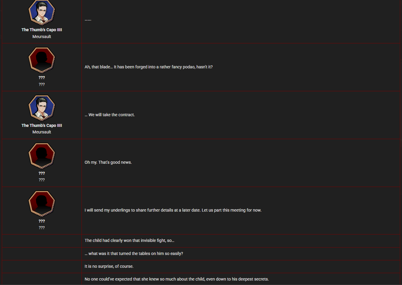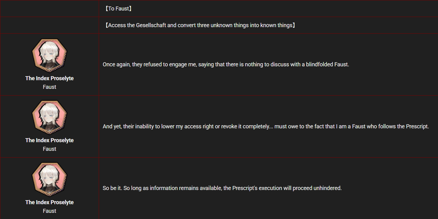 So, who do you guys think will get the Matthias ID? We know it's a woman by Kira Ishmael dialogue, and with Don and Outis also having IDs in this mirror world, we are left with Faust and Rodion. I personally would like it to be Faust, it would be a very different vibe from her usual IDs.