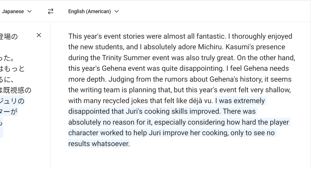 >>554537284The problem is Juri finally cooks something decentFOR NOFUCKINGREASONIn Momotalks, you spend hours upon hours helping her.She spends less than 1 shift at a cafe and again, for no reason, gets a better success rate.>>554537337afaik it seems to be account-tied. My link is a unique string