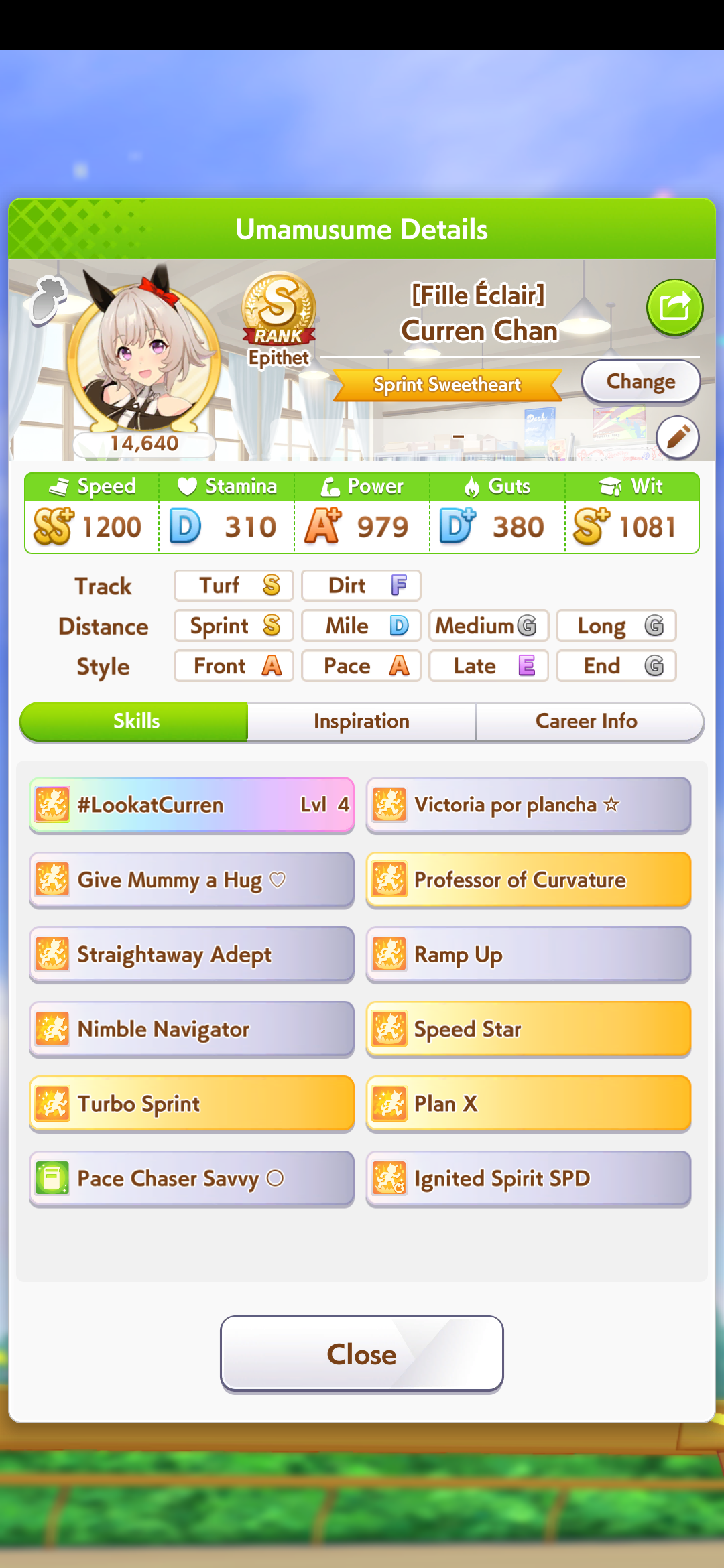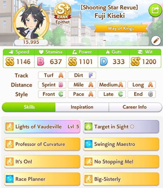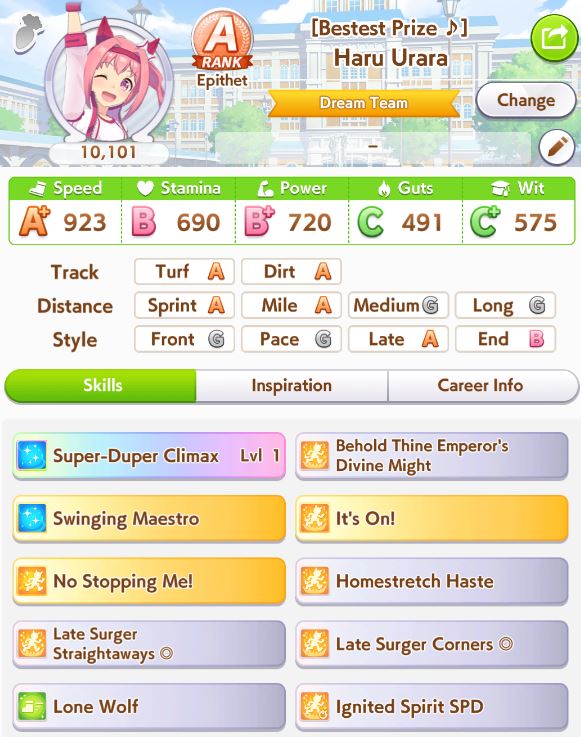 I got my first ever S+ rank uma while trying to get a high score for the aptitude test.