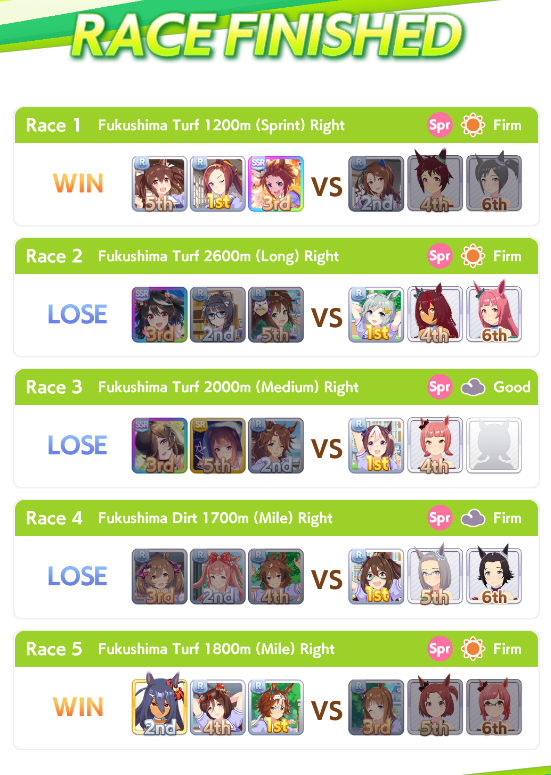 >>554554714Fuck>>554554932I did 12 rooms and only won 2 (one with my end nature and one with a pace mcqueen)the other 10 were:>7 XOguri>1 Goldship>1 Cafe>1 Rudolph