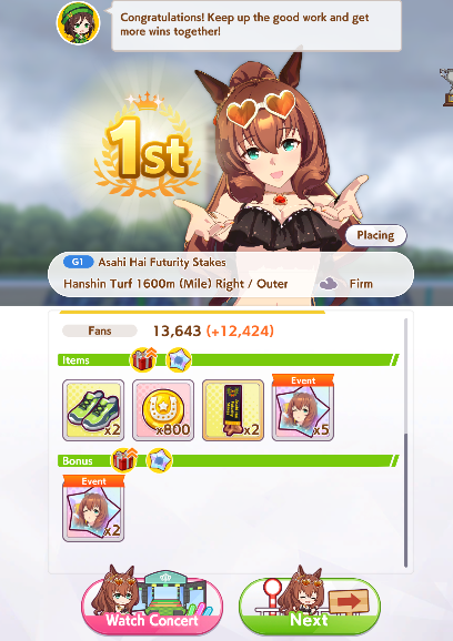 Previous: >>554517556>Global Game NewsLink your account to Cygames iDCurrent Scenario: Aoharu Hai aka "Unity Cup"Current Rate Up Trainee: Christmas Oguri Cap (3* alt), Christmas Biwa Hayahide (3* alt), Fine Motion (3*)Current Rate Up Support Cards: Narita Taishin (SSR), Mayano Top Gun (SSR), Manhattan Cafe (SSR), Inari One (SR)01/19 - Sagittarius Cup - Nakayama Turf 2500m01/22 - Tama 3*+Neicha SSR+Ogurin SSR - Legend Races01/27 - New Beginnings Part 101/29 - NY Opera & Haru 3*+Fuku SSR+Ayabe SSRMid February - Capricorn Cup - Chukyo Turf 1200mhttps://umamusume.com/news/100040/https://pages.snep.pw/uma/anni-skill-changes/>JP Game NewsCurrent Rate Up: Kiseki (3*), Support Card Select Pick UpNew Scenario "Yukoma Hot Spring" releasedTimeline: https://uma.moe/timelineCygames Webstore: https://webstore.cygames.com/en/umamusume_en/>Thread Clubshttps://rentry.co/umaglobalclublistYou must be E3 (20k points) to join a circle. Apply with /uma/ or /vg/ in your profile or post ID in the thread.>All Guides & Resourceshttps://rentry.org/uma26Game databasehttps://gametora.com/umamusume (Click the gear to switch between JP / global server info)A basic guide for newfagshttps://rentry.org/umaglobalFind networks if your region is blocked from the game or clienthttps://www.umavpn.top/93Seiyuu & Concertshttps://rentry.org/umstUma Texthttps://umareader.idsmile.xyz/