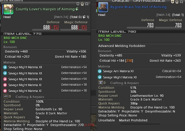 Babby dancer/bard trying savage raiding this tier. How much of a difference does main stat make? I bought the i780 tome headpiece last week, but thinking of buying the i770 pentamelded headpiece (no idea if it's better)