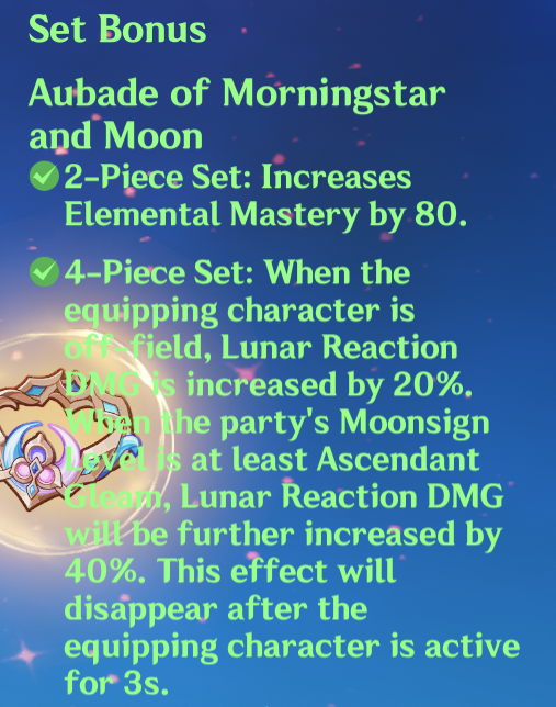 Running this on Nilou in binabloom is surely better than 2 pc hp% sets no? It's 60% lunar reaction damage vs 6k nilou hp (54% bountiful core damage)