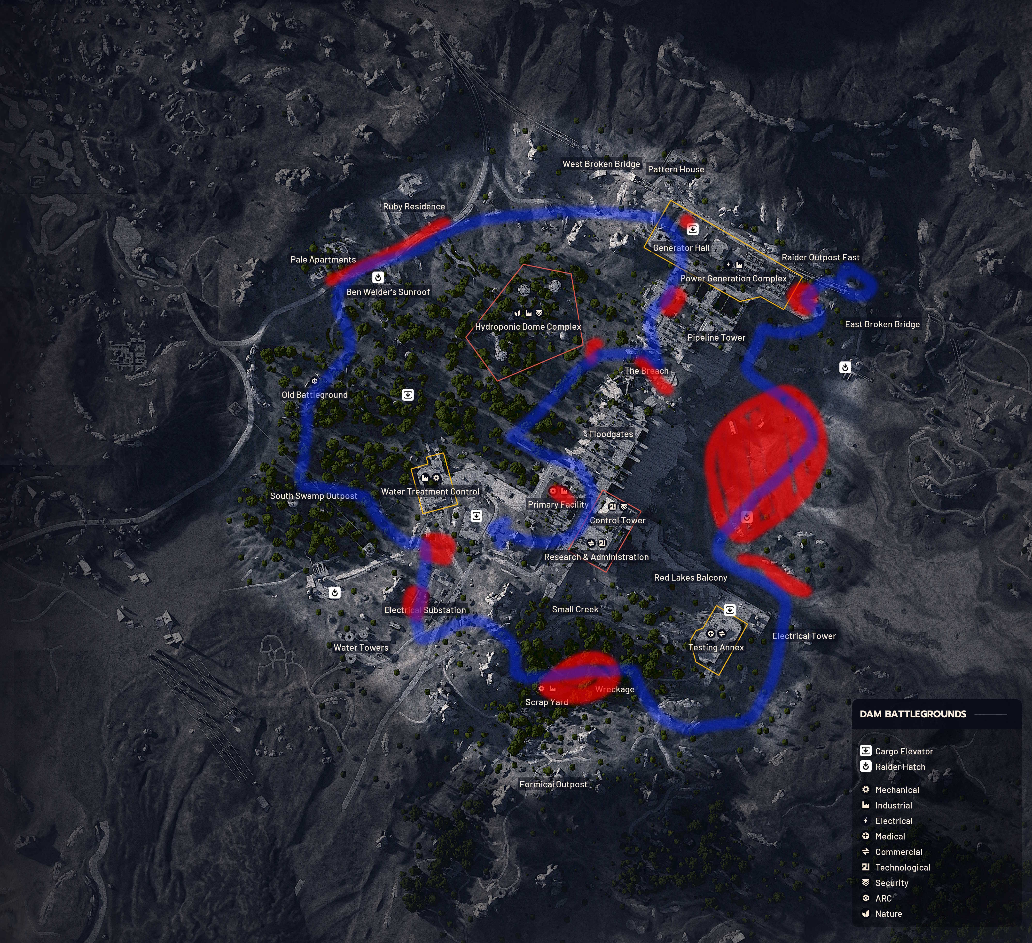 >>554585813Here's my route from this match (blue) plus all the areas I definitely remember finding arc probes either this time or last time I had this challenge (red). My memory isn't perfect, however.The key is to look for smoke (any arc probes not yet fully looted will have smoke) and check your map frequently (within a certain radius of your character any nearby arc probes will appear on the map), and search ones that other players have looted because that counts ofcbring 10 or better 15 adrenaline boosters, IMO bring 2-3 wolfpacks in case a bastion or bombardier is blocking your access to arc probes (there were three clusters in this run that were somewhat guarded by big arc, but only on one I couldn't sneak past it), and bring 5 or so seeker grenades so that wasps don't slow you down if you have to aggro one