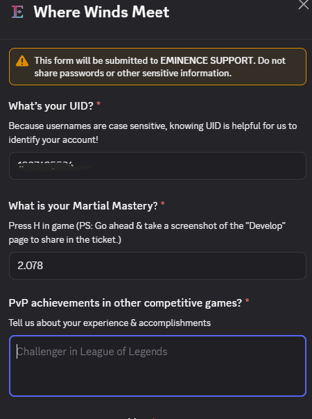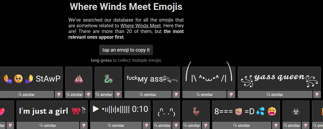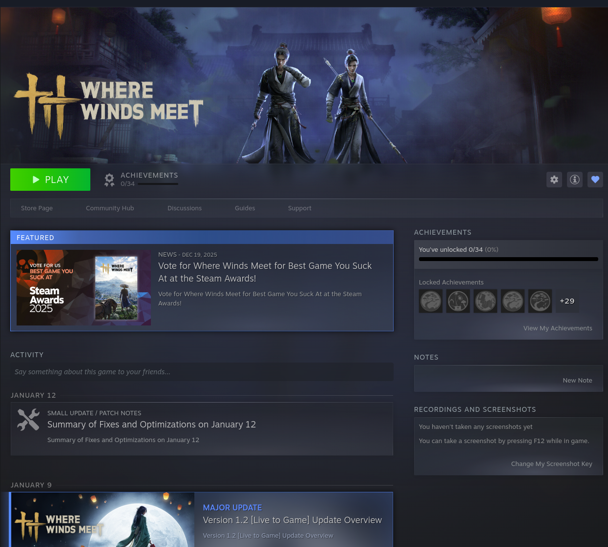 Home EditionPrevious Realm: >>554458219January Roadmap:https://x.com/WhereWindsMeet_/status/2005896637705543813Where Winds Meet is an epic Wuxia open-world action-adventure RPG set in ancient China at the tenth century. Players will assume the role of a young sword master as they embark on a journey to uncover the mysteries of their own identity. Let the wind carry your legend on an epic journey to the East!Download Now:PS Store: https://playstation.com/games/where-winds-meet/Steam: https://store.steampowered.com/app/3564740/Where_Winds_Meet/Official PC Launcher: https://wherewindsmeetgame.com/news/official/GlobalLaunch/InstallGuide.htmlWebsite: https://www.wherewindsmeetgame.com/Maps:Chinese: https://map.17173.com/yysls/maps/qingheEnglish (global): https://mapgenie.io/where-winds-meet/maps/worldNeed help figuring out dailies and weeklies?WWM Helper: https://besaids.github.io/WWM-Helper/home/vg/ Guilds:>Name: Sage>ID: 10001992>Region: NA88/100>Name: HeavenlyClover>ID: 10036681>Region: NA81/100>Name: NoFunAllowed>ID: 10149590>Region: EU77/100Search by ID and then send a message to the guild leaders saying you're from /vg/, or put wwmg or vg in your profile so a vice leader can get to you quicker.4chan Group Chat:Social > Friend > Group Chat > Enter the Code 100008774Codes:Settings > Other > Exchange CodeWWM251115WWMDEVTALKYYSLSTIBtf33hxjmjc