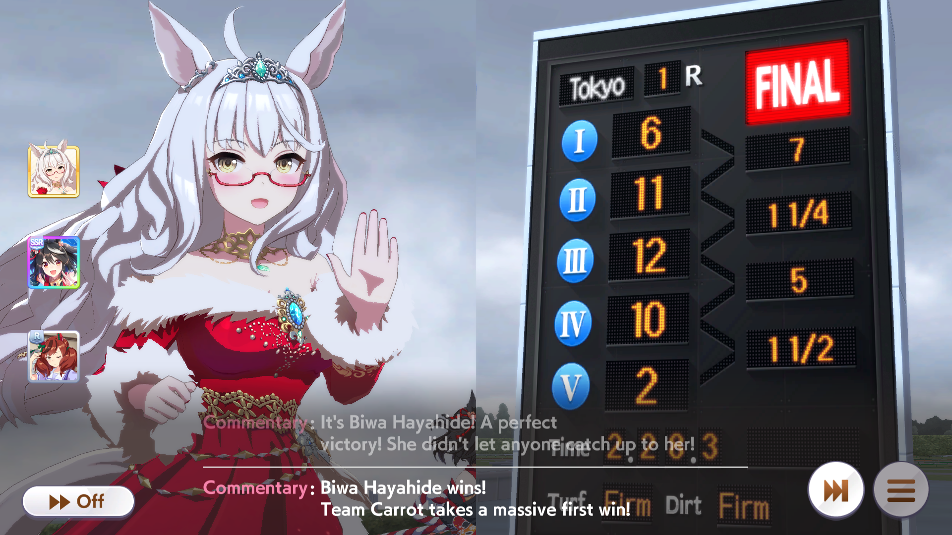 My favorite uma? Sweep Tosho, Nishino Flower, and Biko Pegasus.