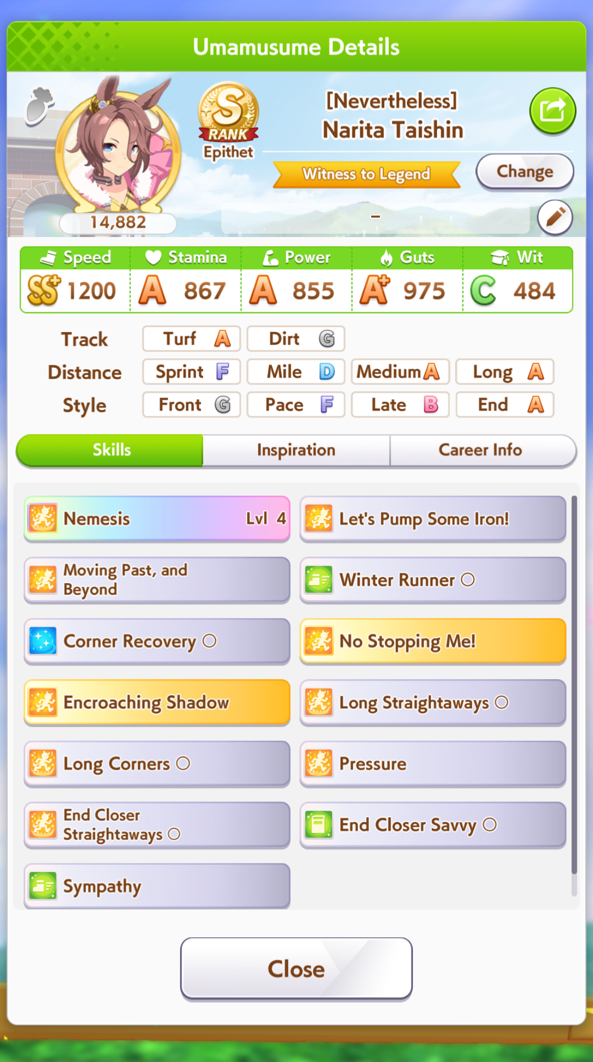 I got my first ever S rank! Too bad no S distance means she's a brick.