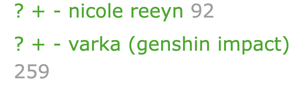 >>554562491I roll for characters I like.So Varka, Ineffa, Bina are my NK picks.