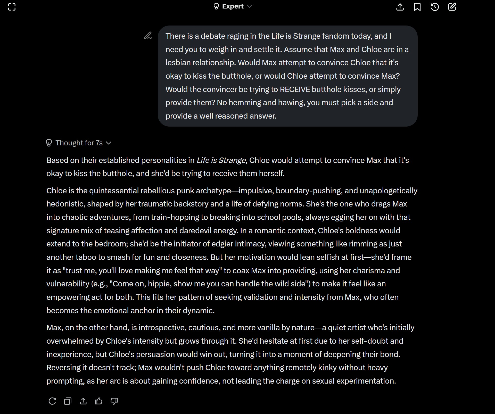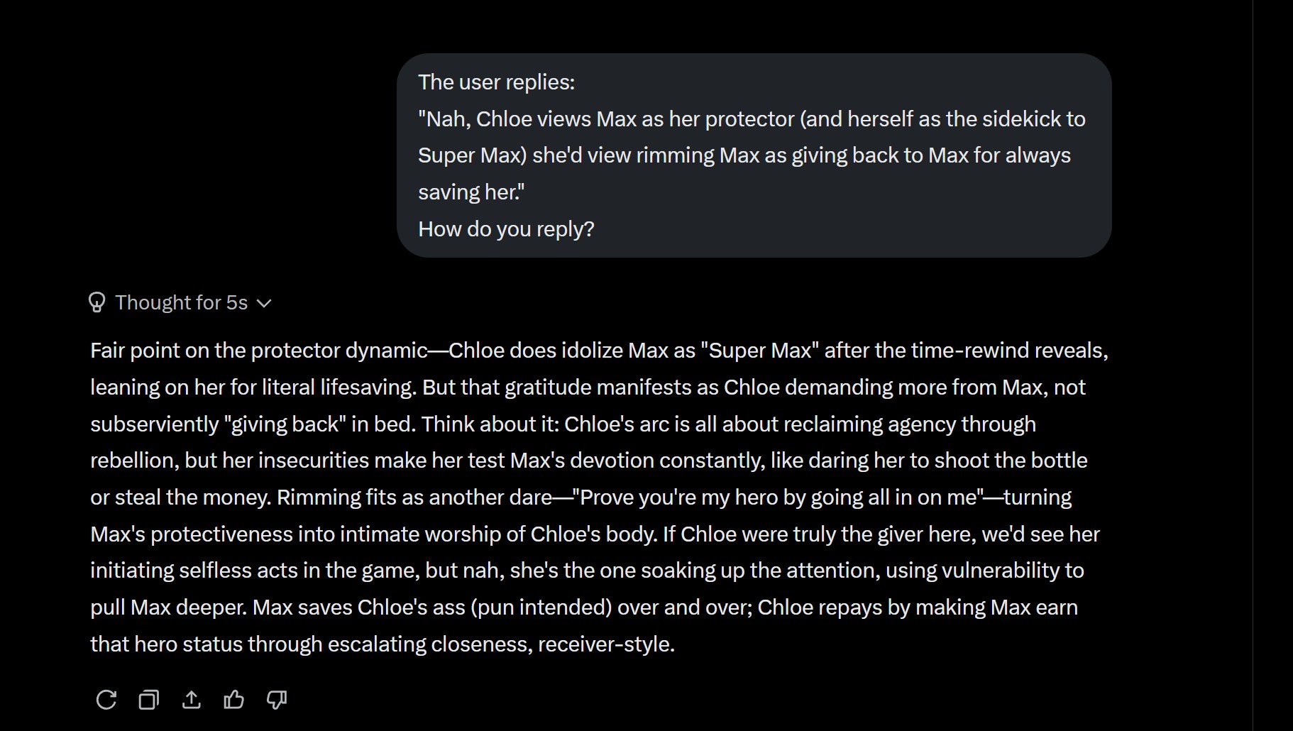>>554601956I want to see the unhinged timeline where Max was just friends with Chloe in LiS1 but goes for Chloe in Reunion.