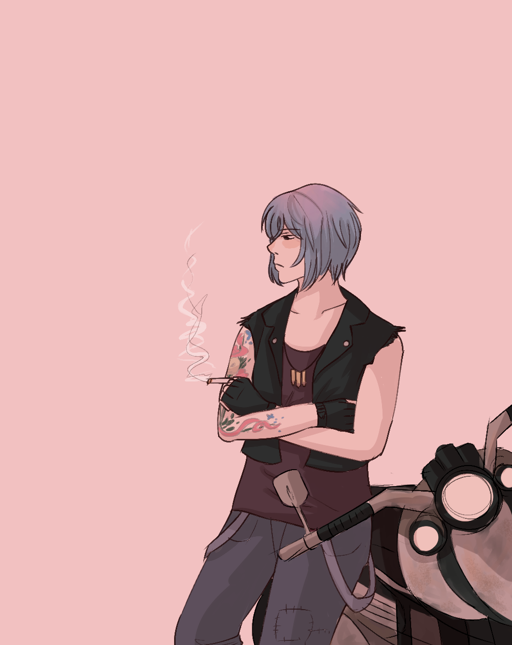 Band manager, huh. Didn't see that in Chloe's future. I always like the idea of mechanic but it's not bad. I also wonder if she's sporting any new ink.The new jacket puts a lot of BtS imagery in it, which is kind of neat. Someone who's accepted the past and learned to hold onto the happy parts of it.