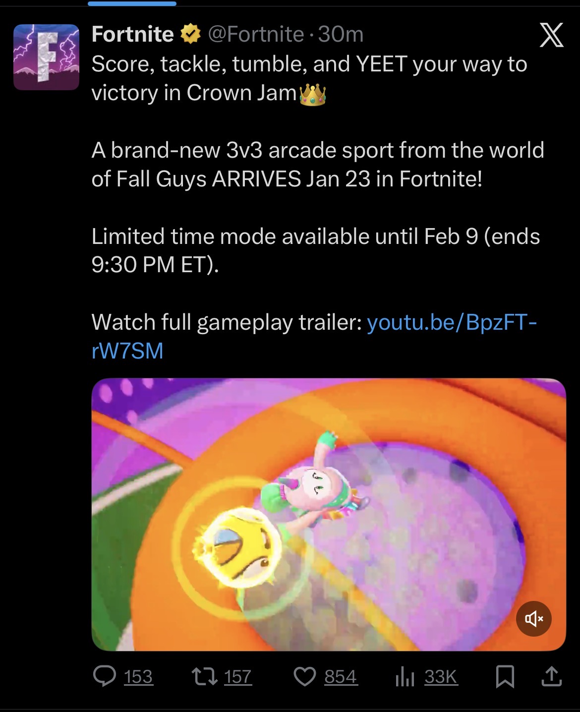 Nobody, and I mean NOBODY, has gave a fuck about Fall Guys since 2022 when it went F2P, and even then that lasted about two weeks. If Epic wants to shill a dead IP, make a new Unreal Tournament and shove it into Fortnite.