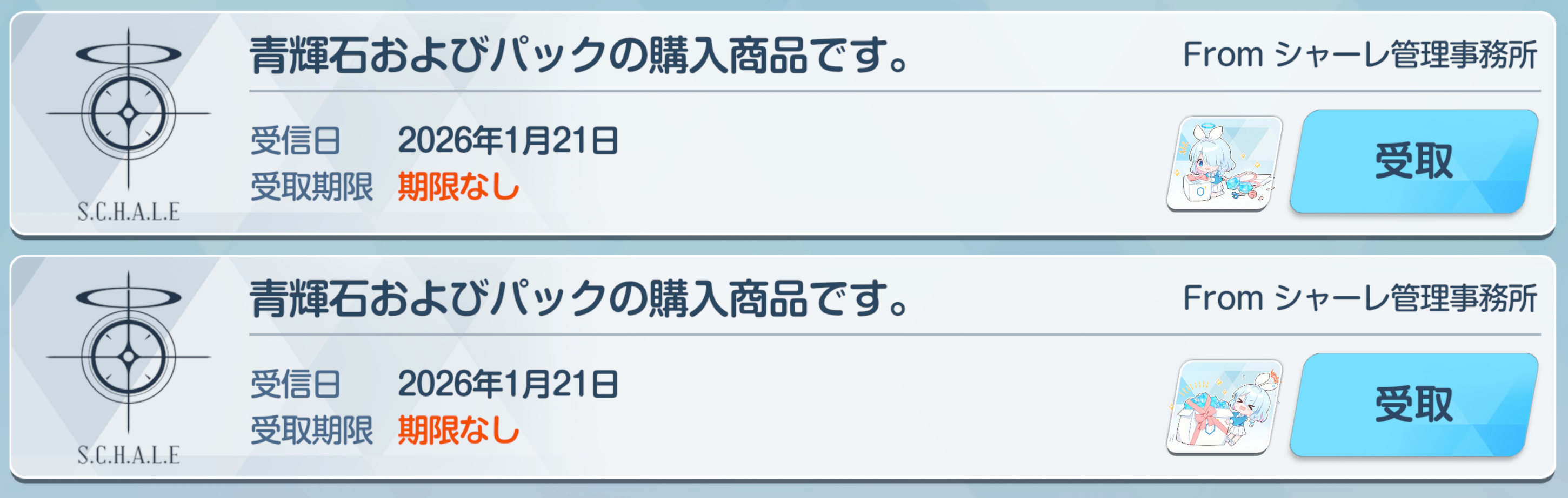 Previous Thread: >>554557974>Guides, Resources and useful links:https://rentry.org/bagguides>/bag/Circles/Clubs/Friends:https://rentry.org/holdingthebag>4koma, Manga, Side Content, PVs & Shortshttps://rentry.org/bacontent>>(JP) – JST>Banners:>1/20 After Maint – 1/29 10:59Rio (Battle – Limited)Himari (Battle – Limited)Toki (Battle – Welfare)>News:Patch notes: https://bluearchive.jp/news/newsJump/624>Events:Steel Continent Assault – 1/20 After Maint – 1/29 10:59100-Free Recruitment Event – 1/20 After Maint – 1/29 10:595th Anniversary Login Bonus – 1/20 After Maint – 2/12 10:59>Content:Limit Break Assault: Chokmah (Field w/Special Armor) – 1/21 11:00 – 2/12 3:593x Bounty/Normal/Hard – 1/20 4:00 – 1/25 3:592x Account EXP – 1/24 4:00 – 1/26 3:593x Commission/Lesson – 1/25 4:00 – 1/29 3:593x Bounty/Normal/Hard – 1/29 4:00 – 2/5 3:593x Commission/Lesson – 2/5 4:00 – 2/12 3:592x Account EXP – 2/7 4:00 – 2/9 3:59>>(GLOBAL) – UTC>Banners:>1/13 After Maint – 1/27 1:59EriKanoe>News:Patch notes: https://forum.nexon.com/bluearchive-en/board_view?thread=3336837>Events:We Are the Occult Investigation Society! Ancient Spells and Mysteries – 1/13 After Maint – 1/27 1:59My Office: https://bluearchive.nexon.com/user/myoffice>Content:Total Assault: Perorodzilla (Field) – 1/20 2:00 – 1/26 18:59Joint Firing Drill (Shooting) – 1/27 2:00 – 2/2 18:59Limit Break Assault: Chokmah (Field – w/Special Armor) – 1/14 2:00 – 2/9 18:592x Normal – 1/19 19:00 – 1/26 18:592x Account EXP – 1/23 19:00 – 1/25 18:592x Lesson/Scrimmage – 1/26 19:00 – 2/2 18:59