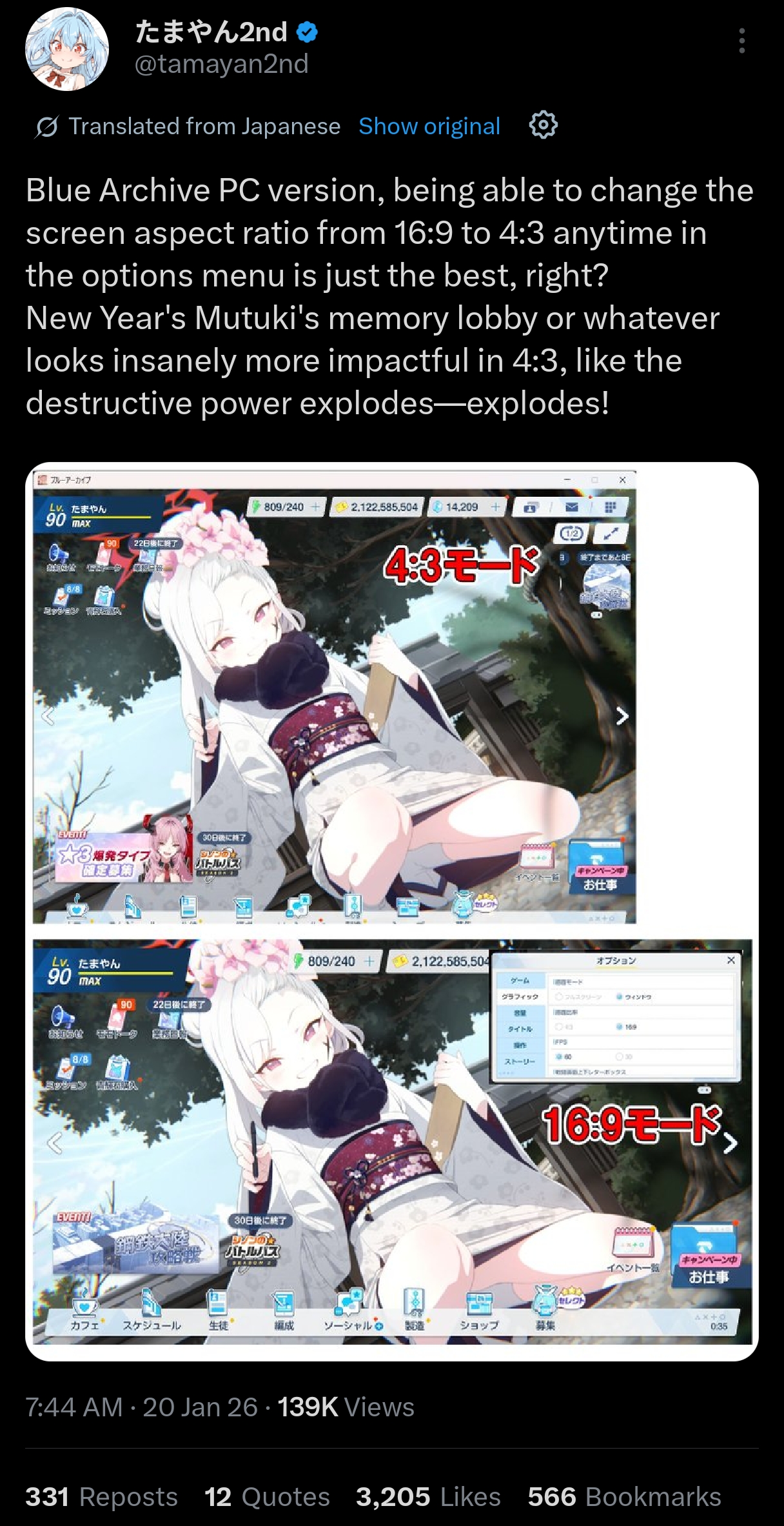 >>554590834I'm curious, did you already have some Jap skills at the time, or did you start learning for Blue Archive?>>554590091It does help a bit to put things into perspective, one every three years, it's just a bit of a hard time to pass>>554592107Good luck with the moonrunes, anon, I hope you can enjoy the decaKINO>>554592410Yeah... It does bother me too for the seasonal events, it's a bit depressing to not live it during the right time>>554592781You do have a massive point, it's true that my life resolve essentially around Blue Archive, and hanging out with /bag/ all day surely doesn't help...Thank you anons for your answers, it helped me come to my senses a bit, I think I'll wait and keep hoping for acceleration