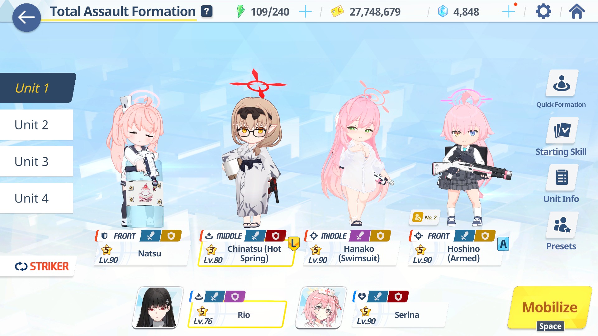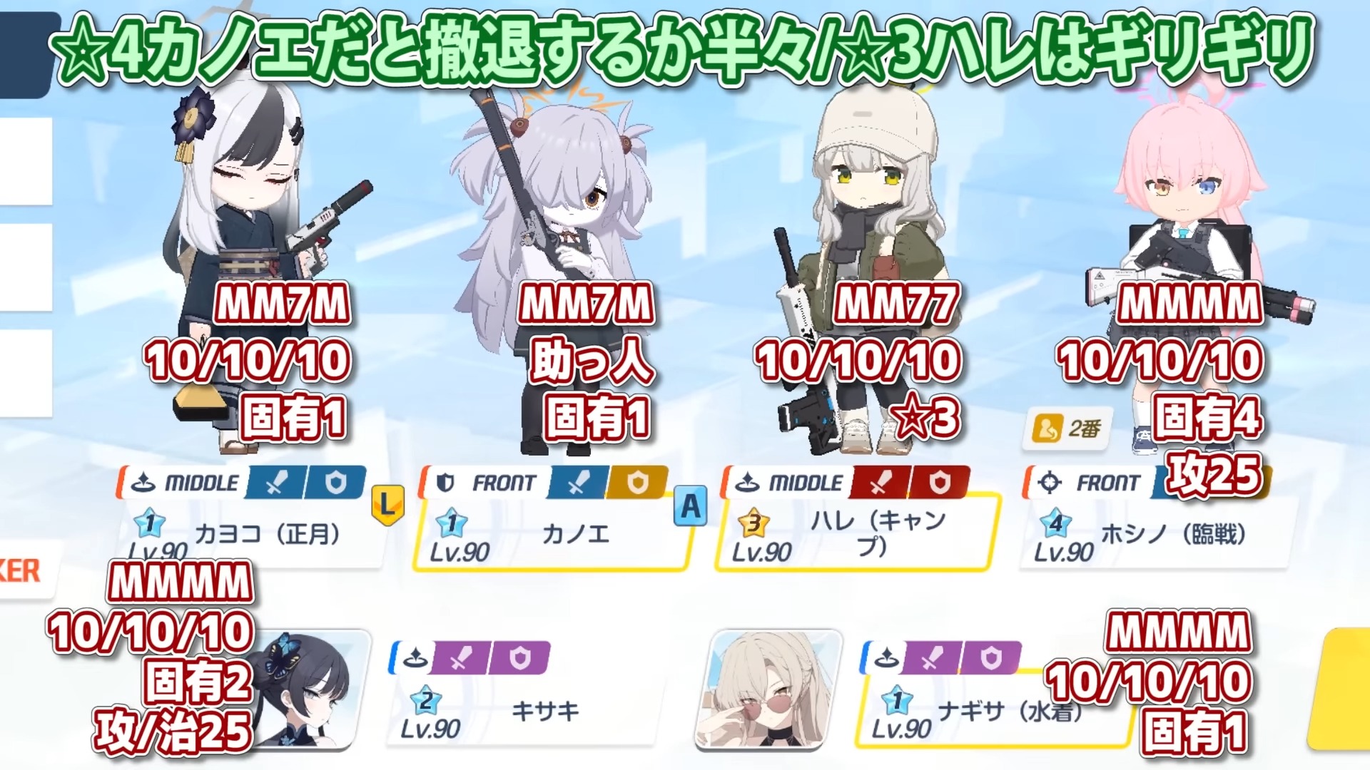 >>554594495I don't feel confident in my own DPS and I feel like 1T may be possible if I improve. I just need to identify what I could be doing better at team building. I'm sure execution of minion groups leaves something to be desired>>554594661I got bHoshino during the recent fest but she's still at low level and I'm running low on activity reports and have run out of watches so anything I do put together will be sad.>>554594887She was on the bench, I can swap her into the fourth striker slot and see how things go. I didn't expect to need a sub DPS but this roster adjustment may be what I need.