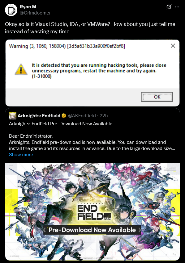>WuWa's UE5slop can run on my laptop @ 40-50fps in Low settings>Endfield ~apparently~ doesn't (I even get scolded for not meeting the minimum system requirements in the title screen)ExplainWasn't Unity supposed to be the better game engine???