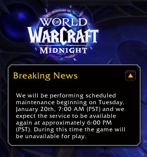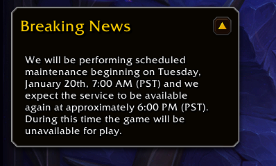 >haven't played in a couple years>finally got a sub again>maintenanceHow long does the maintenance usually take these days? I just wanna level a druid
