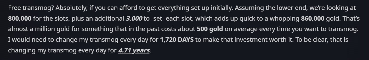 They ruined transmog for everyone that doesn't use more than like 2 sets LMAO