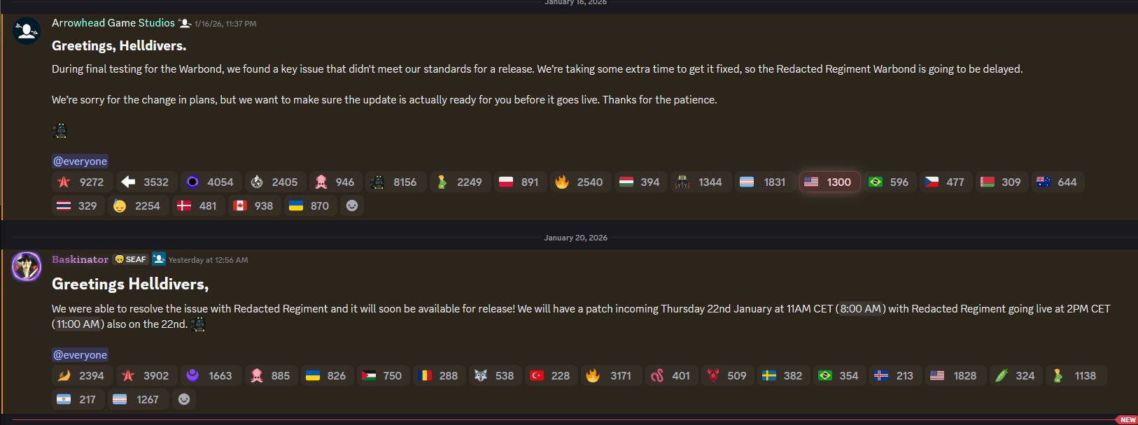 >>554611814Hey guys so the warbond is slightly delayed to Jan 22nd.Why would we post this information on steam or in any blogpost? You guys have discord, don't you?