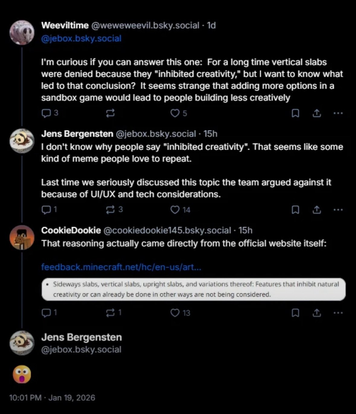 Jeb recently clarified that they are against vertical slabs due to “UI/UX and tech considerations”, and the point about them inhibiting creativity is either outdated or misinformed