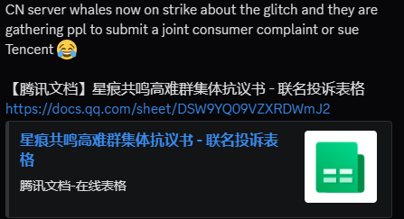 >>554617218TLDR About the exploit :>CN players abused glitch since start of game>Said glitch allowed you to get 100% golden imagines, gacha boxes, whatever you wished for>Glitch was caused when you flooded your inventory to 1999/2000 due to no proper checkingHere's how it looks :https://www.bilibili.com/video/BV1cpzGBeEUx How did it come to light?A Streamer was taking another players account for a carry run on the new raid encounter, and they had a look at their inventory and it looked kinda weird, this sparked people to investigate what was going on leading to the video in question, accounts might have been sold using this glitch, the market could have been hugely impacted as well.How does this affect global?It does not, global players would not know about this unless they played CN was part of the closed circle for it