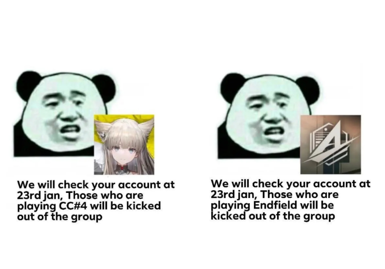 >>554619784This is a reminder to all members, read closely: if we see anyone playing Arknights: Endfield, we will take that as your resignation from the crew and you will be removed from the server. You are here to play Unite and Fight. We will not tolerate our members playing other games. We will also assume if you post out during the first few months of Arknights: Endfield that you are playing it behind our backs and will be swiftly removed. This is NOT up for debate. Any questions or concerns involving this can be brought up to an officer but again, we will assume you will be leaving us for Arknights: Endfield. If you do bring up any issues with this you will be removed, so tread CAREFULLY. Thank you!