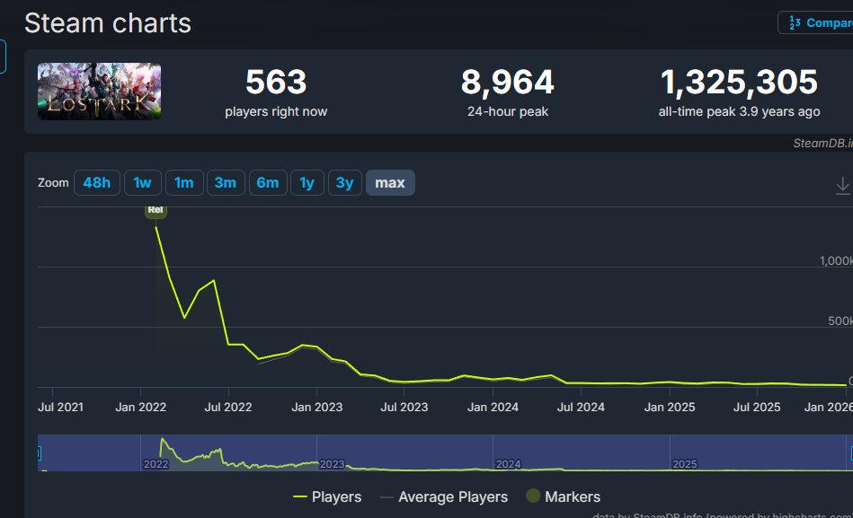 >>554628340You're retarded. Look at the graph of leaguestart peaks, and then look at each leaguestart being considerably lower than the last, which means fewer players return every league. I am not looking at absolute numbers, the only absolute number I'd consider is a failure is 0.I am looking at the trajectory of numbers, over the context of it being out 1 year, and it points down very steeply, without exception. That's where I see a failure.But we both know that, you're just trying to misunderstand what i said on purpose to make yourself look good. It's so easy to see.
