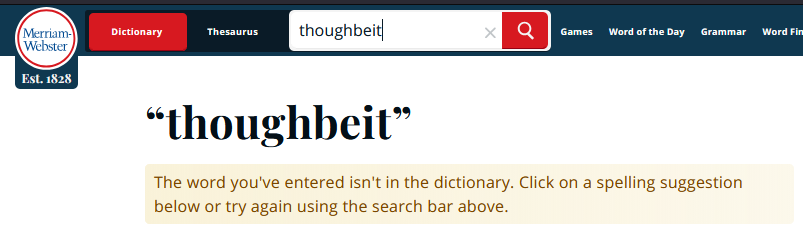 stop using thoughbeit. its not a real word