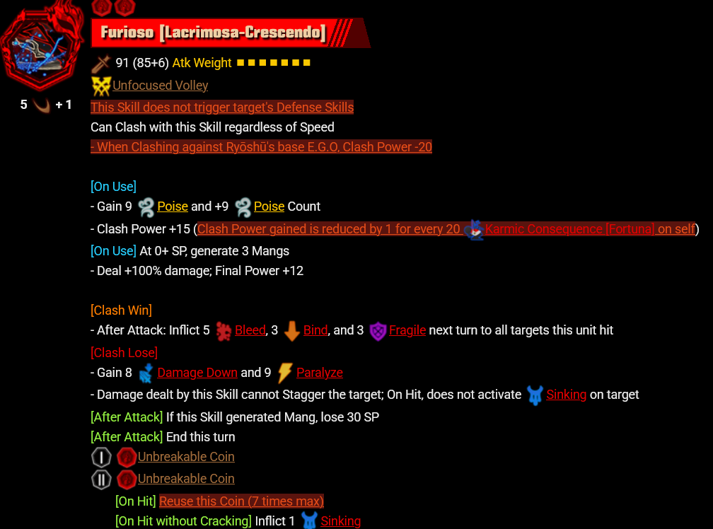 i really really enjoy the fromsoft text on skills. gives more depth to the characters for people who care without forcing it down everyones throats in the story cutscenes. this together with all the different fonts on skills to make them easier to read and a bunch of npc assistants integrated into boss fights, it feels like limbus reached a new era