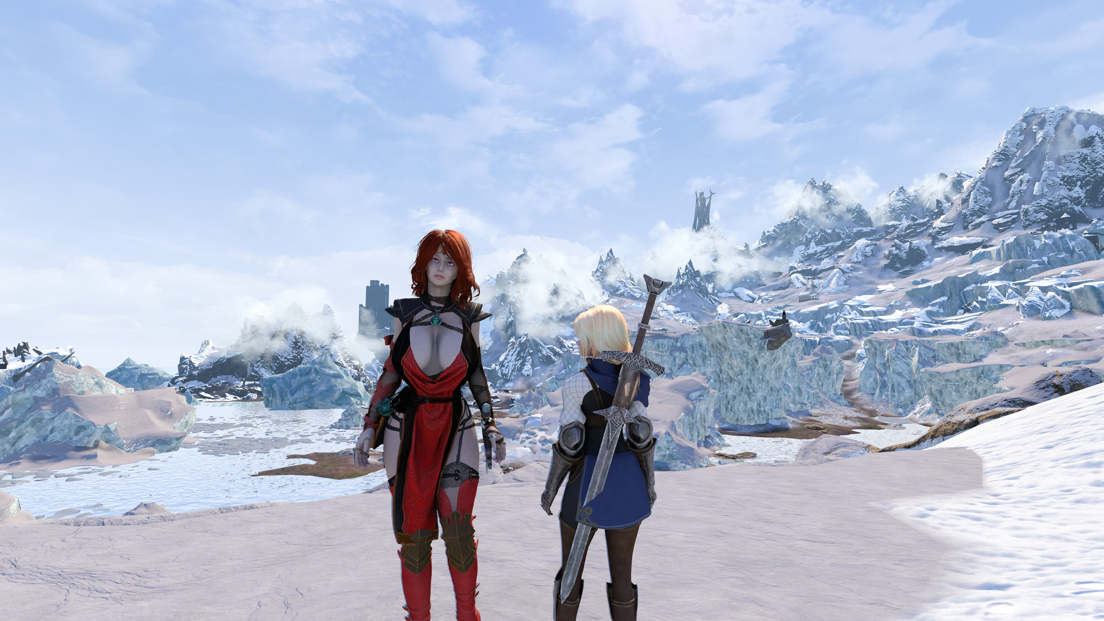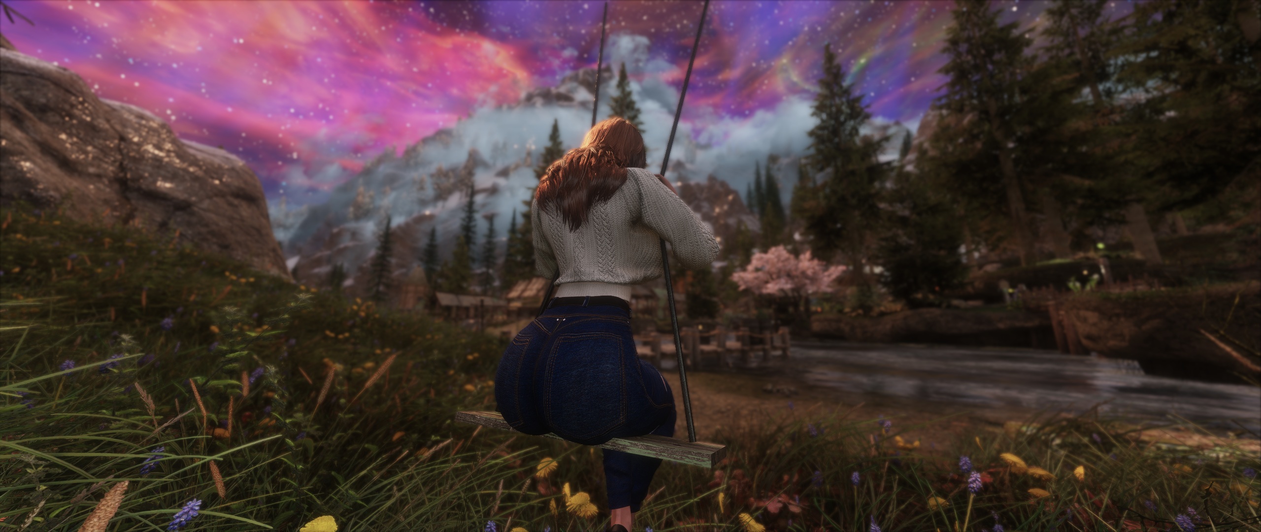 here's with "screen space raytracing" on. >>554711526no, I already have 2 wives, she's a daughter-fu>>554711835it's probably a miss-match between the seasonal landscapes I'm running and w/e snow mod I'm running (it's currently winter in my save)