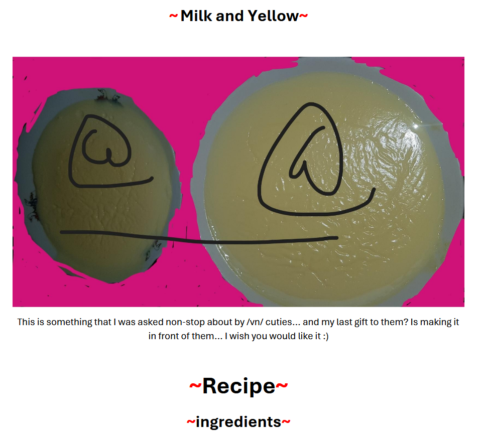 >>554668069Thanks for the milk and yellow recipe, king. I need to buy some powdered milk later today.