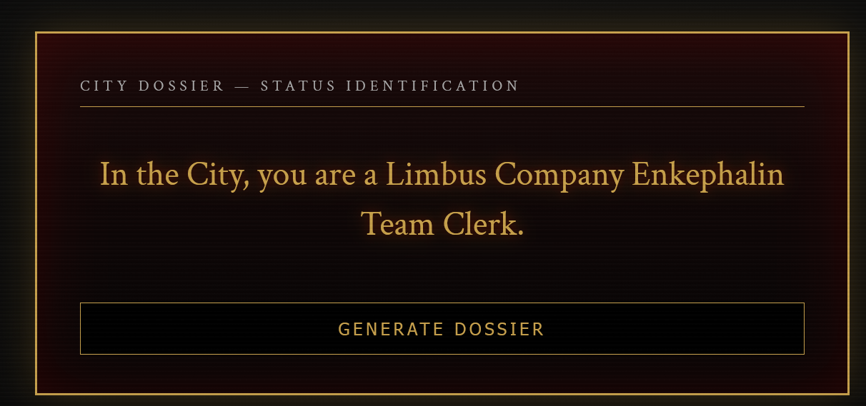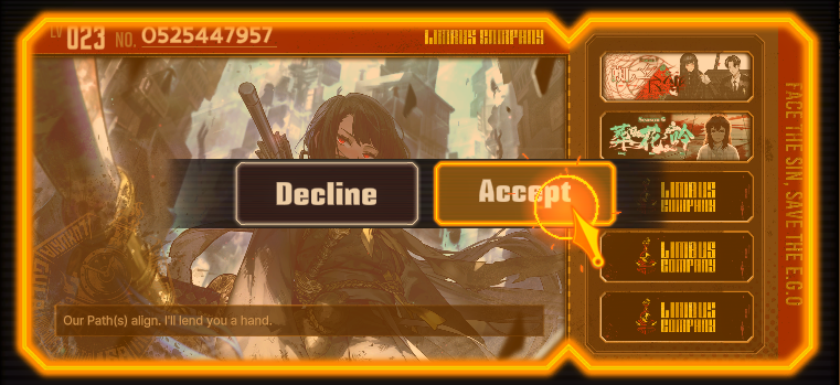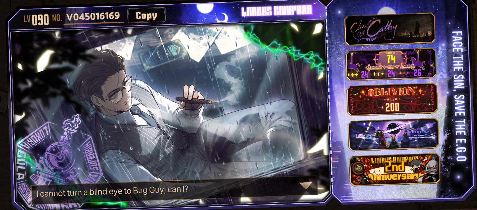 Previous thread: >>554648442Season 7 - Kumo no Ito2025.12.31 —Mirror Dungeon #6 - Mirror of Immortality2025.07.03 —Refraction Railway Line 5 - Merry Go Round2025.02.20 —>Current Events>Upcoming Extractions2026.01.22 — 2026.02.05[000] The House of Spiders: The Middle Apprentice Ishmael>Current Extractions2026.01.08 — 2026.01.22[000] The Index Proxy - Effloresced E.G.O:: Procuration Don Quixote2025.12.31 — 2026.01.22Target Extraction: [ Ryoshu ] ID & E.G.O>FAQs! This game is directly tied to the setting of Project Moon's previous games, Lobotomy Corporation and Library of Ruina, and is set after both. Expect spoilers for those games in this thread.! The tutorial is important.>Download linksAppStore: https://apps.apple.com/app/limbus-company/id6444112366Google Play: https://play.google.com/store/apps/details?id=com.ProjectMoon.LimbusCompanySteam: https://store.steampowered.com/app/1973530/Limbus_Company/>Other linksOfficial twitter: https://twitter.com/limbuscompany_bOfficial youtube: https://www.youtube.com/@ProjectMoonOfficialOfficial site: https://limbuscompany.global>Required readinghttps://mega.nz/folder/xosDkZ5Z#Wt4JpUt5Bb2XG77pxuuXpw>For all your EGO and Sinner info needshttps://limbus.kusoge.xyz/https://gll-fun.com/en/>Useful resources and a general guidehttps://rentry.org/lcg_resourceshttps://rentry.org/lcbguidehttps://rentry.org/LCB_optimal_grind_guidehttps://lcb-days-since-last-id.carrd.co/https://lcb-days-since-last-ego.carrd.co/>Countdownhttps://lcbcountdown.carrd.co/