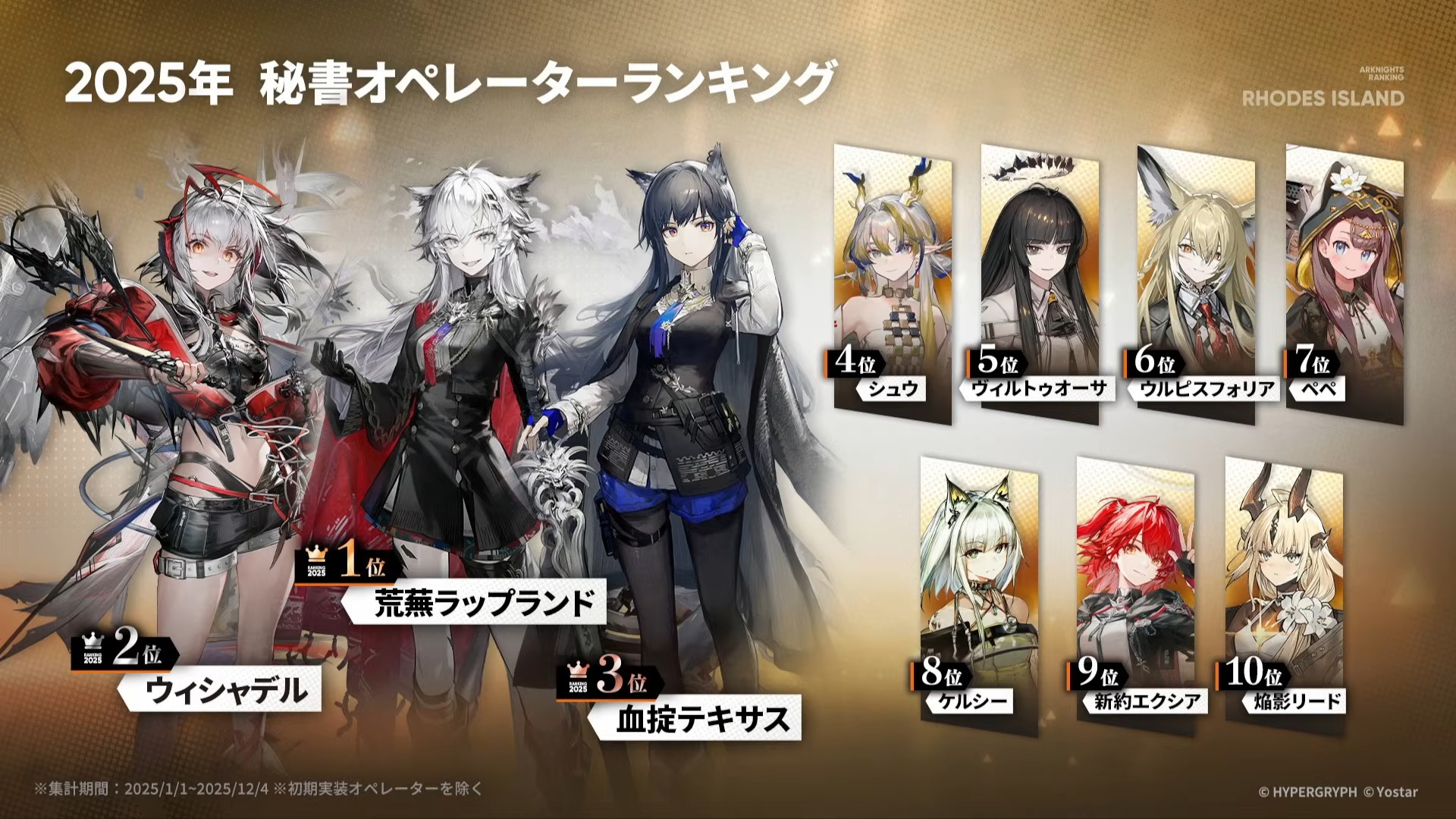 Previous thread >>554654393Happy birthday to Figurino!Web event: https://goldenfortune.arknights.global/>CURRENT, FUTURE GLOBAL/JP/KR CONTENT:[1/16-1/30][Standard]6* Caster Ebenholz, 6* Specialist Swire the Elegant Wit (Shop), 5* Defender Cement, 5* Sniper Melanite, 5* Vanguard Blacknight (Shop)[12/23-1/20][Test Collection]Amiya, Rosmontis, Zuo Le[1/6-1/20][Skin Reselling]Goldenglow, Surtr, Bryophyta, Myrtle; Nightingale, Hoederer, Weedy[1/16-2/6]Ato - 5* Vanguard Matsukiri[1/16-1/30][Hanabi Exiled]6* Defender Hoshiguma the Breacher, 6* Supporter Haruka, 5* Sniper Kichisei[1/16-2/13][Marthe, Coral Coast & Misaligned Sightseer]Thorns the Lodestar; Ch'en the Holungday, Necrass, May; Pepe>CURRENT, FUTURE CN CONTENT:[1/15-1/29][Standard]6* Guard Entelechia, 6* Specialist Lee (Shop), 5* Guard Leto, 5* Supporter Sand Reckoner, 5* Supporter Grain Buds (Shop)[1/9-1/23]Medjehtiqedti Bound - 5* Guard Varkaris[1/9-1/23][Quester in Frozen Moments]6* Medic Pipi, 5* Perfumer the Distilled, 5* Supporter Lucilla[1/9-1/30][Cambrian]Blaze, Entelechia[1/9-1/23][Skin Reselling]Reed The Flame Shadow, Mint>/akg/ website:https://akgcc.github.io>AK EN Database:https://puppiizsunniiz.github.io/AN-EN-Tags/akhrchars.html>More valuable resources:https://rentry.org/akg_resources>/akg/ merch guidehttps://rentry.co/akg_merch