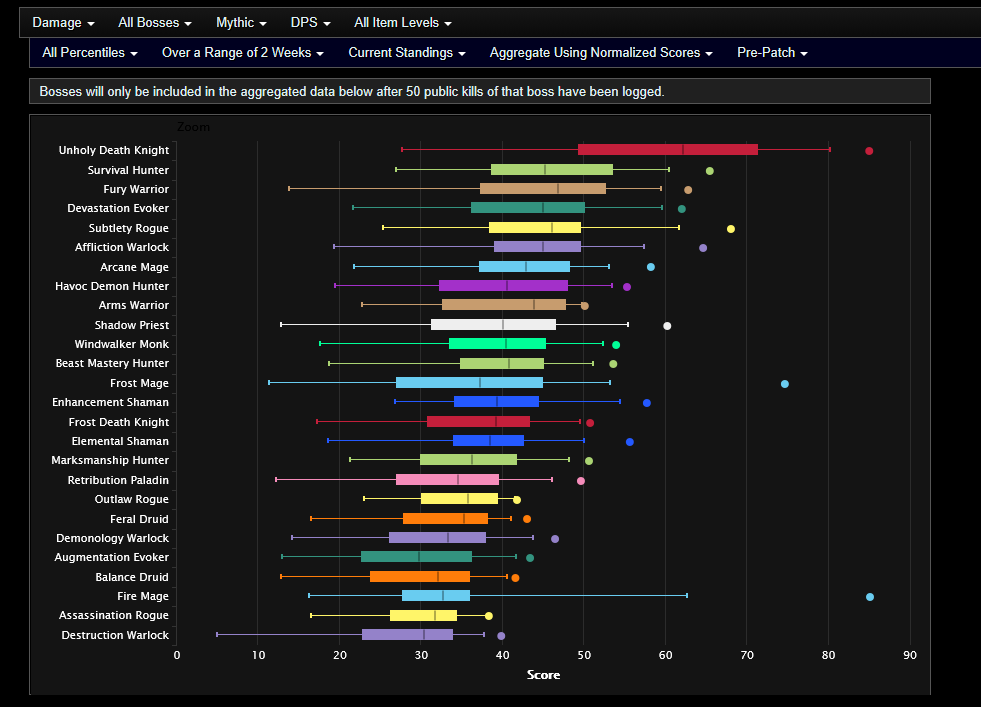 >>554724830https://www.archon.gg/wow/tier-list/dps-rankings/raid/mythic/all-bossesyou can use a data aggregator like archon to get a rough idea of what people use the most or who has the most throughput as they pull data from warcraftlogseverything else is subjective or depends on what your raid comp needs