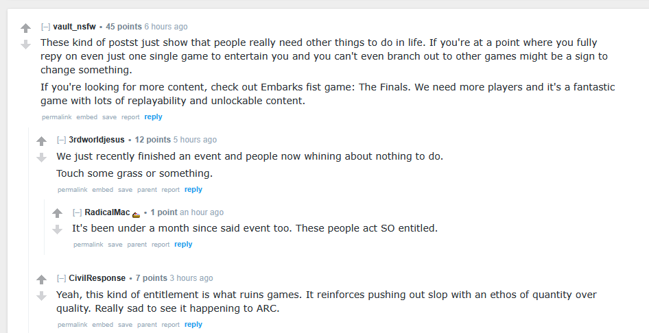 >>554919414Because ARC is closer to solving the issue than any other extraction shooter and the devs are being retarded by doing a 180