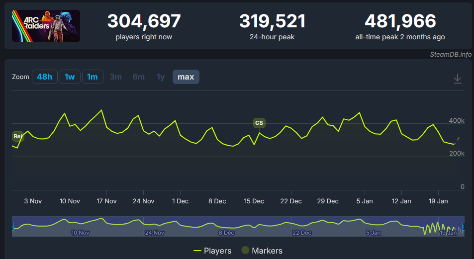 >bot playerbase and viewership casually dropping by 100k in a day cause arc devs need to cut costs for continued vacations